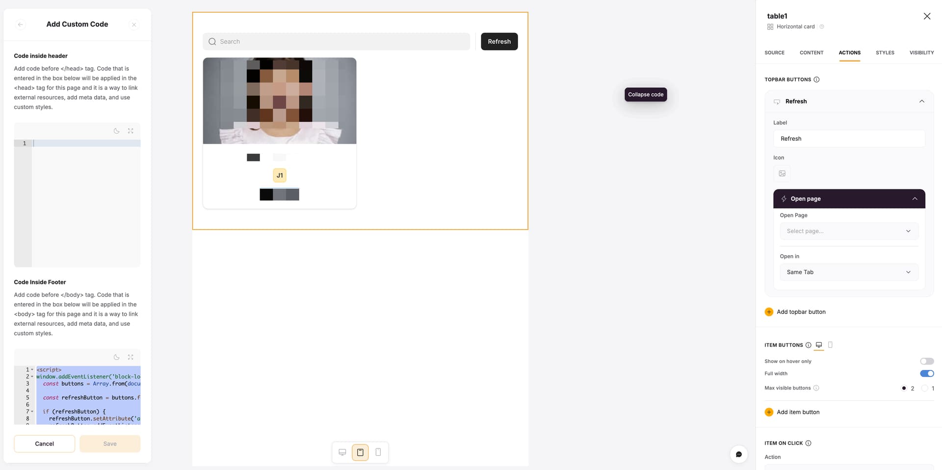 And finally the action you set in the Softr studio for the button “Refresh” should be "open page " and select page => nothing, leave it. It can work if you actually point to a page but it might be faster without selecting a page.