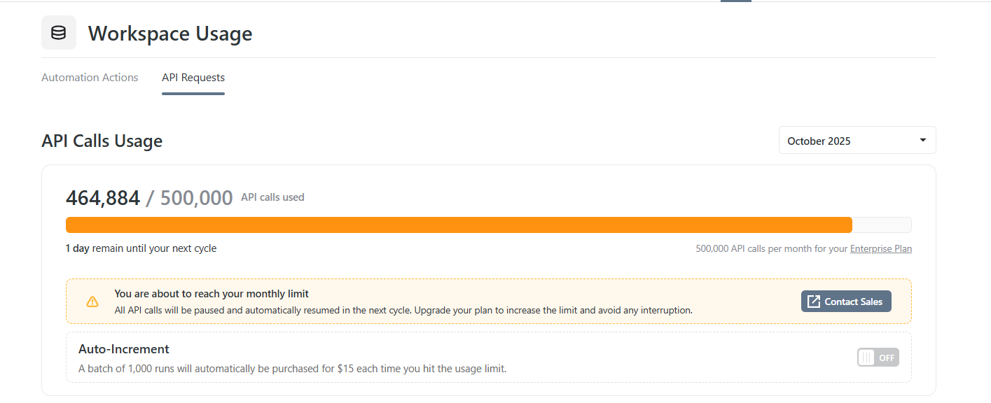 But I am quite concerned here, as, we are on the highest plan with Smartsuite (Enterprise), and they want $15 per 1000 calls on anything over 500000 (the limit with Enterprise).