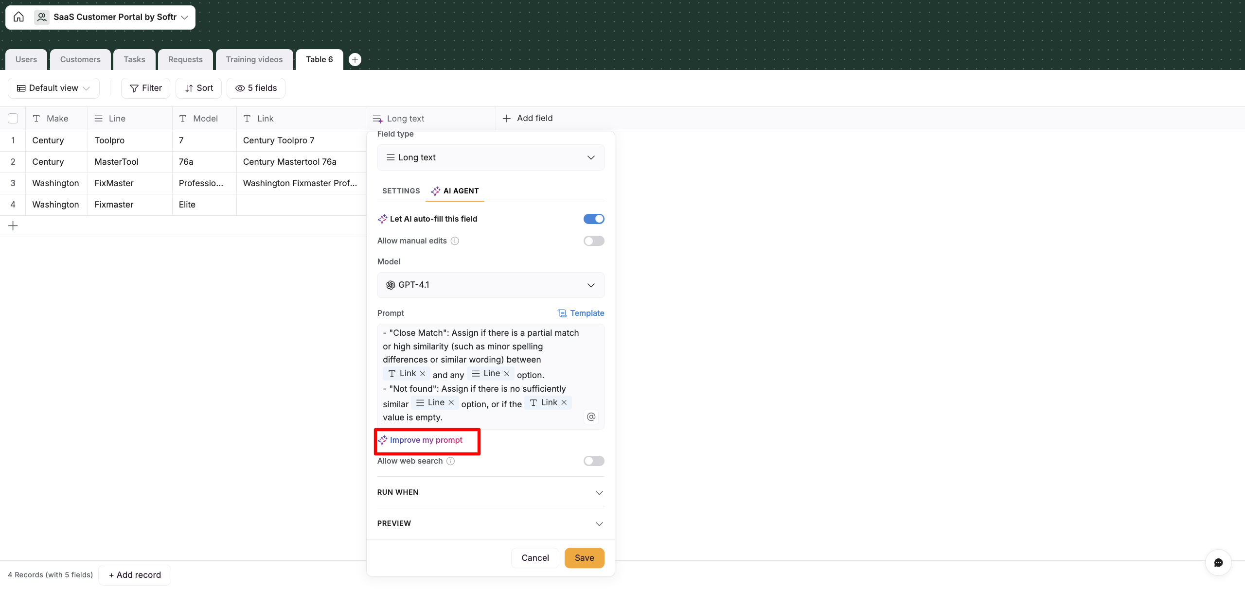 I am having a play with a potential workflow in softr databases and I’m wondering if an AI field could help.