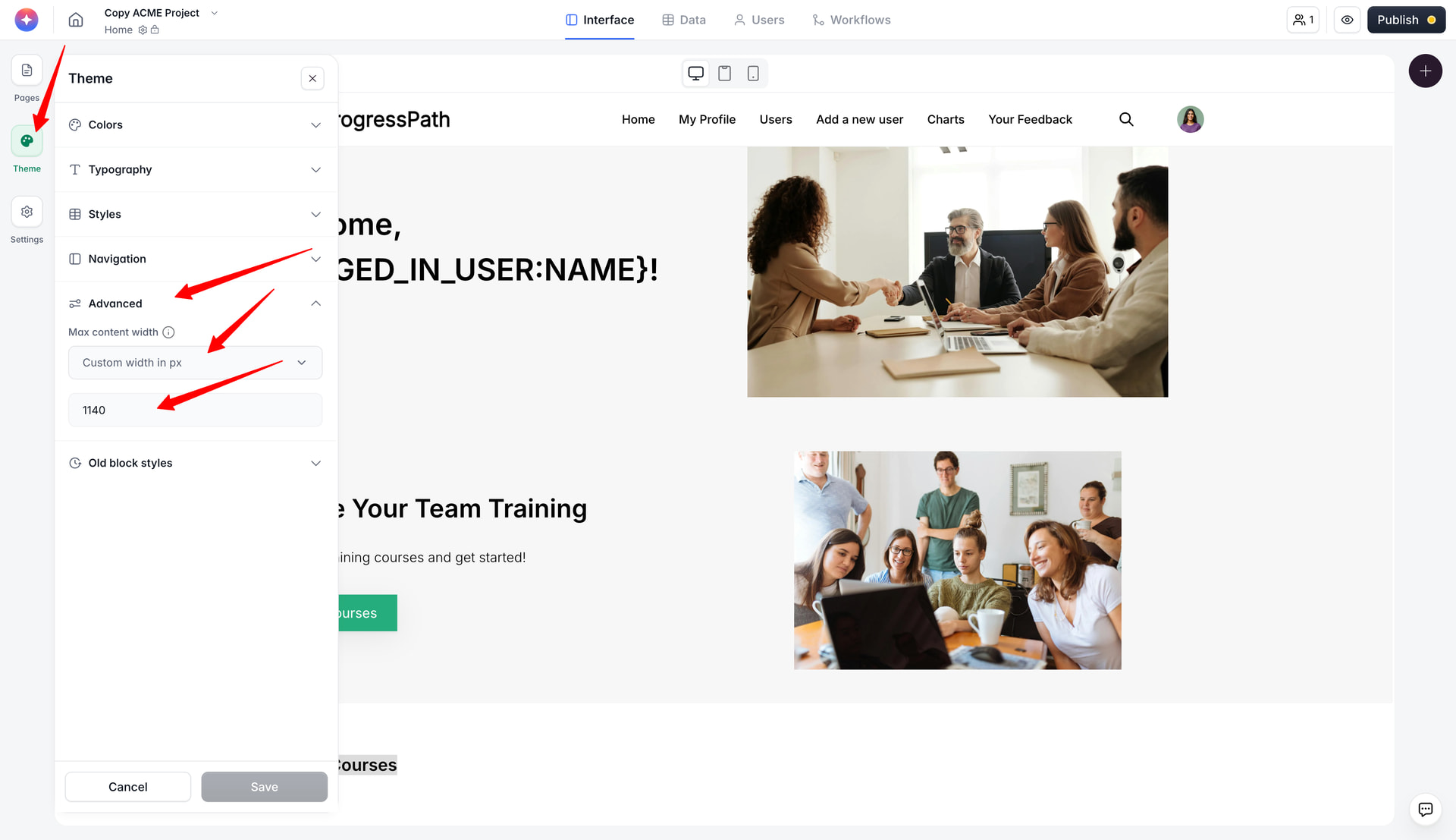 For the charts, there are no native options to make the width of the block wider. You can either play with the width of the whole app in the Theme → Advanced → Max content width (check the screenshot), or use some custom codes to increase the width of that particular block.