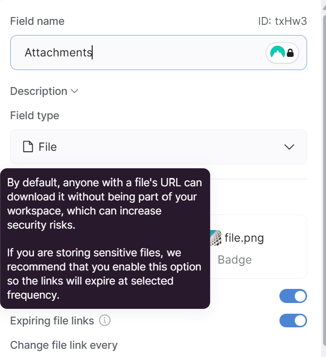 Just noticed this message in the file field type in Softr DB which I hadn’t noticed before. Does this mean even if I have the front end set to only be accessible to logged in users, there is a potential for other people to access via the preview file link even without being logged in? I hope not as this would completely rule out us being allowed to store any files in the database