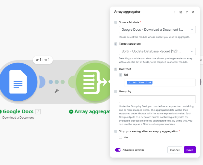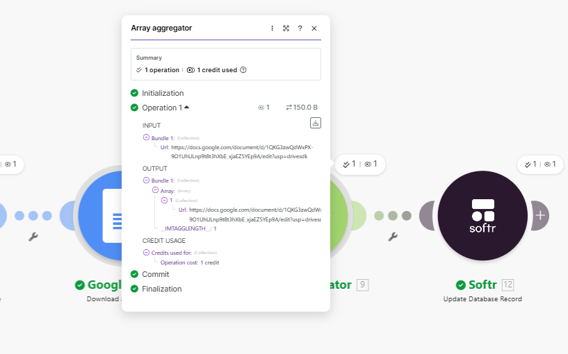 Using make.com I want to upload a Google Doc to a “File” field in a Softr Database.