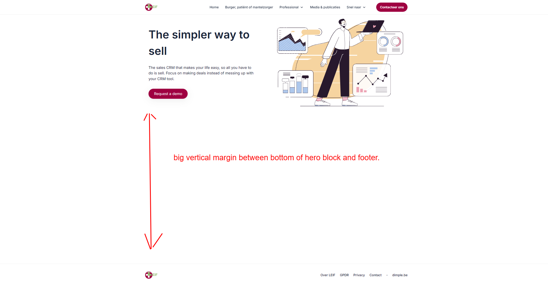 Hi, Fairly simple but annoying layout question. Creating a page with a header, one static block (eg. hero1) and a footer. How to reduce the distance between bottom the block and the footer.
