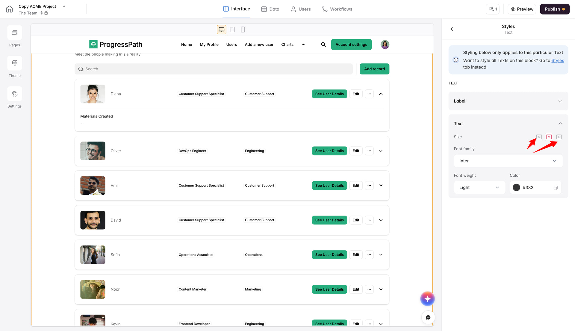 I see. For some cases it will give you options to edit the size of not only the text, you can test around to see. Or you can create that list using Vibe Coding block and giving it a detailed prompt for the styling (and not only) you need