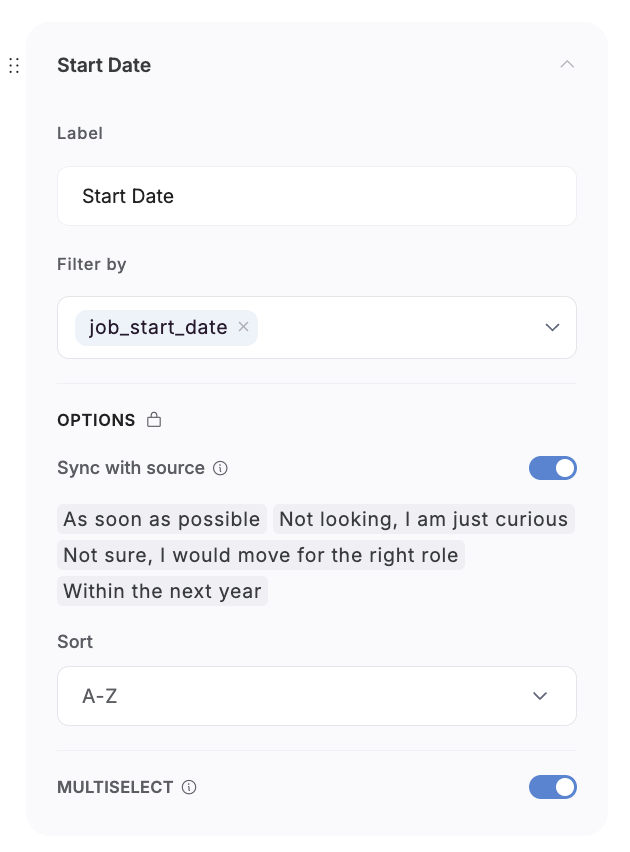 I see the synched options on a list filter when I toggle the option on, but then I see that it’s actually not working yet.