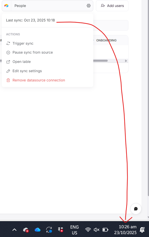 The issue with one time verification code appears to be a syncing issue when a user tries request OTP. In Softr they’re not recognised as a User as the ‘sync’ is not up to date (see below) so the ‘Sync records that match all the records’ does not pull the users from Airtable to Softr.
