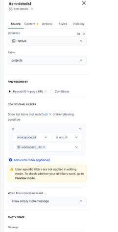 This is not a bug, but rather how it is expected to work. If you have an Item Details block on a page, then for the other blocks on the same page, when applying a conditional filter, you can use the Current Record parameters in the filter.