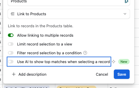 In Airtable we can ‘use AI to show top matches when selecting a record’