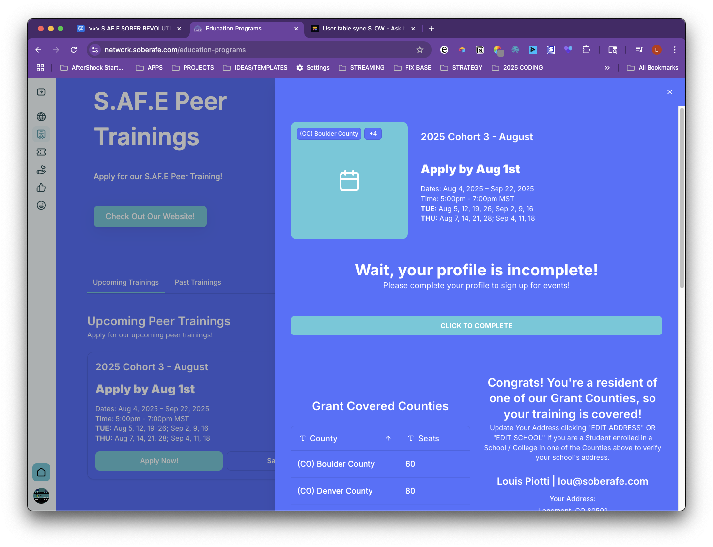 Inside my Education Programs Details page on Softr I have this block with the Device Visibility to she when the Profile is INCOMPLETE: