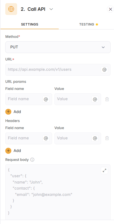 For some values of the body of that API call you’ll then be able to map workflow variables (with the @ icon) to ensure the right records are being created.